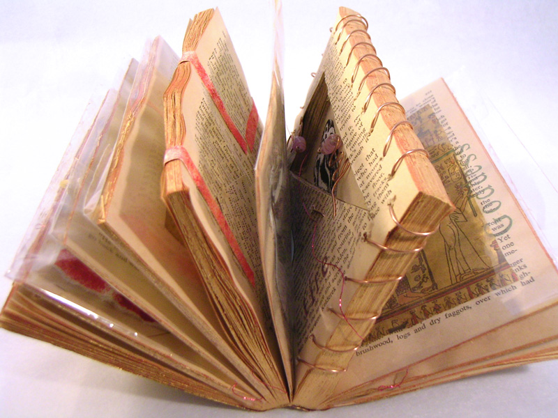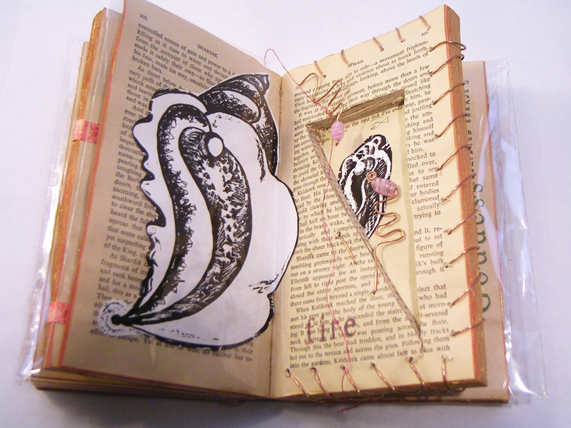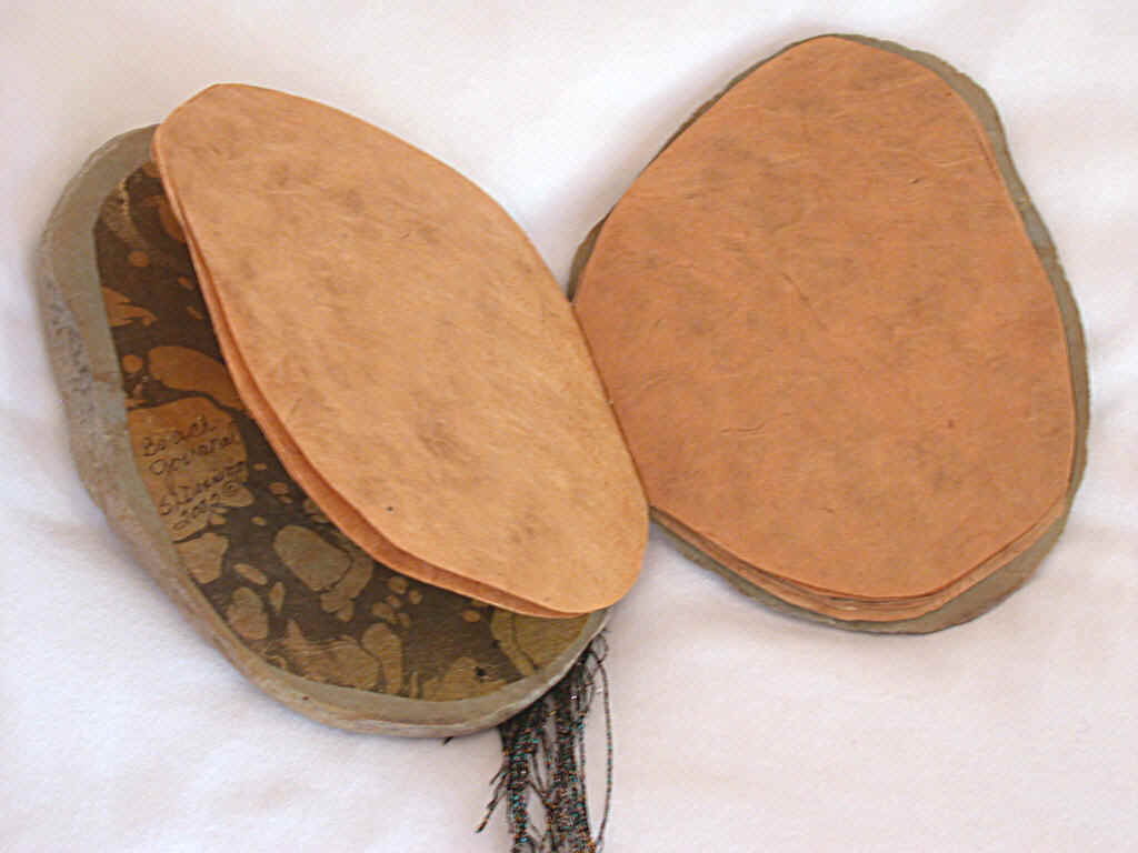 I love the feel of paper and making journals and books. I use handmade paper and commercial paper for signatures and use recycled boxes, paper, books, cardboard and stone for the covers to create “Art Books and Journals. Some are made to be used and others are just visual and conceptional works. A lot of images I use originate from books, magazines, TV, video, objects themselves, and ideas that I’ve drawn on paper.